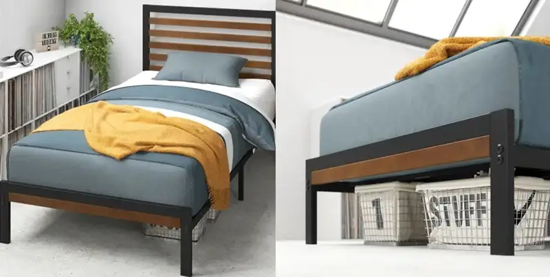 Rangka besi memberikan kesan vintage dan tahan lama. Tempat tidur ini cocok untuk kamar anak hingga kamar tamu yang ingin tampil beda. Sebagai pilihan, ada Zinus Kai DIY Bed In a Box yang memiliki ukuran 100×200. Tempat tidur bergaya industrial ini terbuat dari kombinasi rangka besi dengan aksen kayu bernuansa alami.
