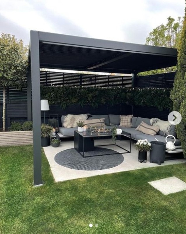 Jika menginginkan gaya klasik, kamu bisa mengaplikasikan warna netral seperti halnya hitam untuk gazebo rumah. Terlihat sangat elegan bukan?