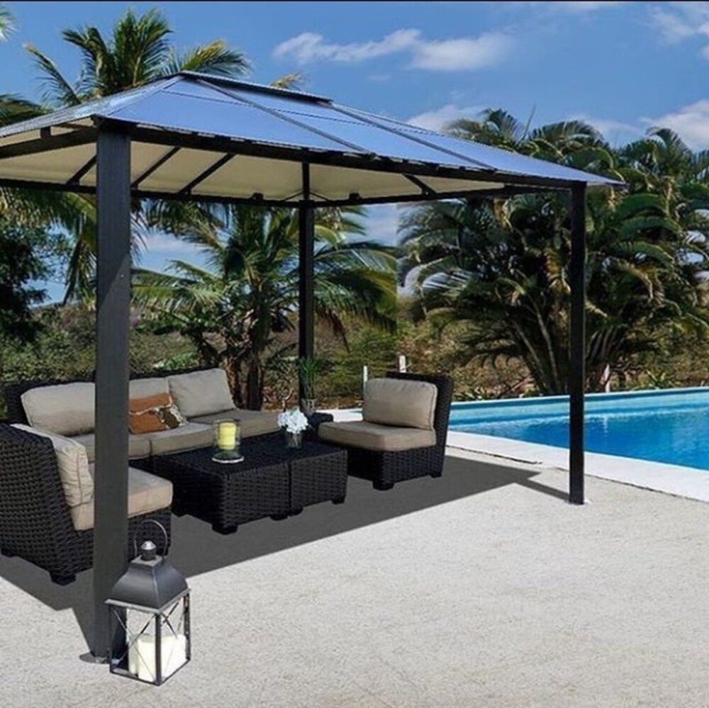 Atap polycarbonate bukan hanya bisa diterapkan pada bagian dalam rumah saja, tapi juga untuk ruangan di luar rumah, seperti gazebo.