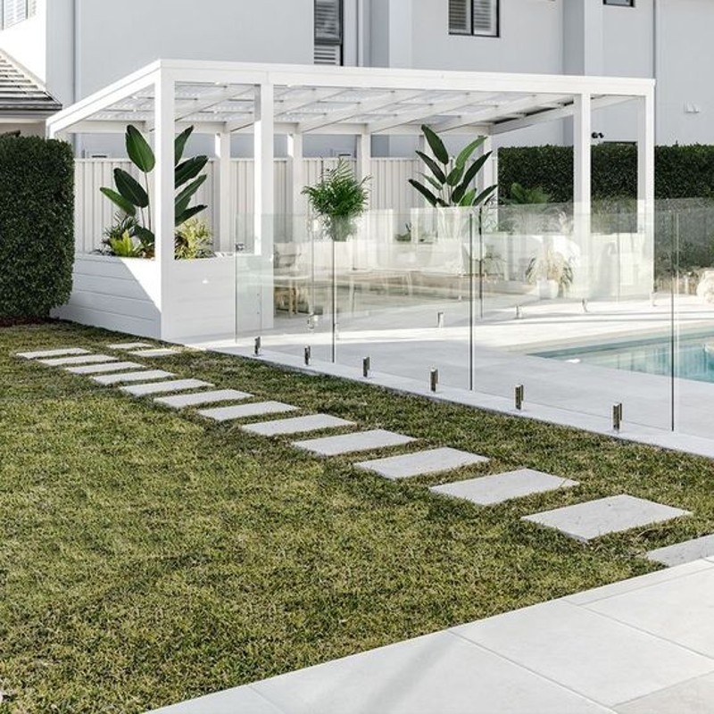 Penggunaan atap segi empat atau kubus, membuat kesan minimalis kian terpancar. Ditambah lagi dengan pilihan warna netral, desain gazebo baja ringan ini dijamin bisa membuatmu terpesona, deh!