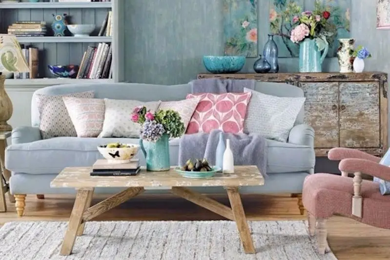 Desain ini  dipengaruhi oleh gaya vintage yang sangat feminim dan lembut. Interior shabby chic ini didominasi oleh warna putih, krem, dan warna pastel lainnya. Kata shabby sendiri memiliki arti lusuh, sehingga tidak heran kalau kamu akan menemukan banyak furnitur bergaya lusuh pada interior ini.