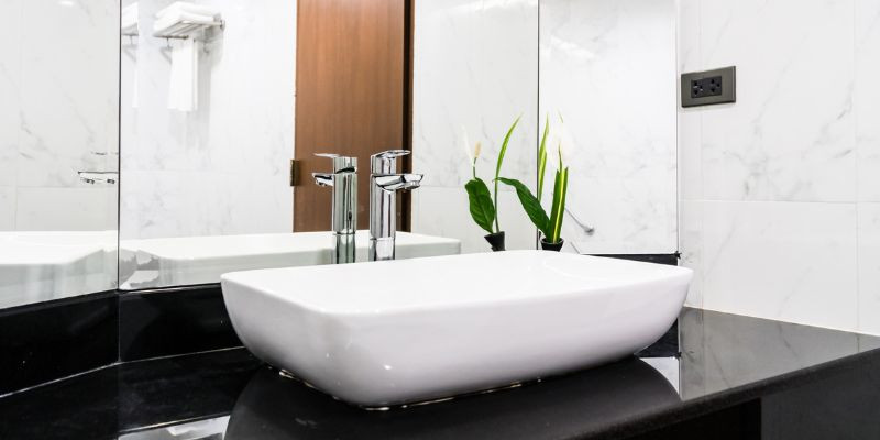Jika kamu penggemar desain minimalis sejati, wastafel monokrom adalah elemen yang tidak boleh dilewatkan. Pilihan warna hitam-putih yang tegas memberikan kesan elegan tanpa terlihat berlebihan. Warna putih sering digunakan sebagai dasar karena memberikan kesan bersih, sementara sentuhan hitam atau abu-abu dapat diaplikasikan pada aksen seperti kran, bingkai cermin, atau rak penyimpanan.