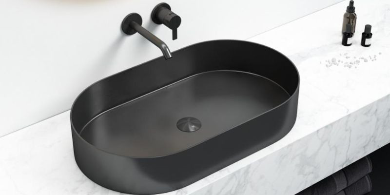 Untuk kesan elegan dan berkelas, wastafel hitam doff bisa jadi pilihan tepat. Warna gelap yang tidak mengilap ini memberikan tampilan mewah dan unik, apalagi jika dipadukan dengan bentuk mangkuk yang tidak biasa seperti menyerupai telur.