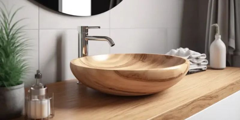 Ingin tampilan berbeda dari yang lain? Wastafel kayu bisa menjadi jawabannya. Meskipun jarang digunakan, model ini memberikan nuansa alami yang menenangkan dan cocok dipadukan dengan gaya minimalis. Agar terlihat serasi, pilih motif keramik dinding atau lantai kamar mandi yang memiliki warna senada. Pastikan kayu yang dipilih telah melalui proses pelapisan anti air untuk memastikan daya tahan dan mencegah kerusakan.