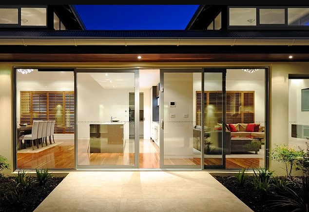 Contoh pintu geser lainnya adalah pintu geser dengan patio. Jika biasanya patio hanya dibuat sebagai jendela, kali ini Anda bisa menggunakan pintu geser dengan patio.