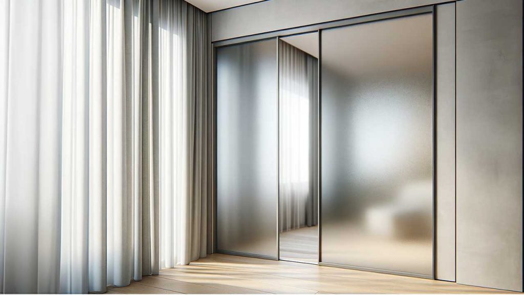 Sama dengan pintu geser kaca transparan, model pintu geser kaca buram ini telah banyak digunakan. Biasanya pintu geser kaca buram ini digunakan pada ruangan-ruangan yang membutuhkan privasi tinggi seperti kamar mandi, walk-in closet atau ruangan-ruangan dengan privasi lainnya.