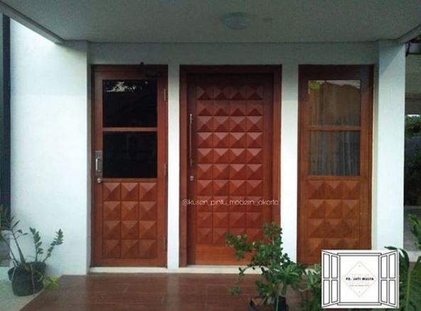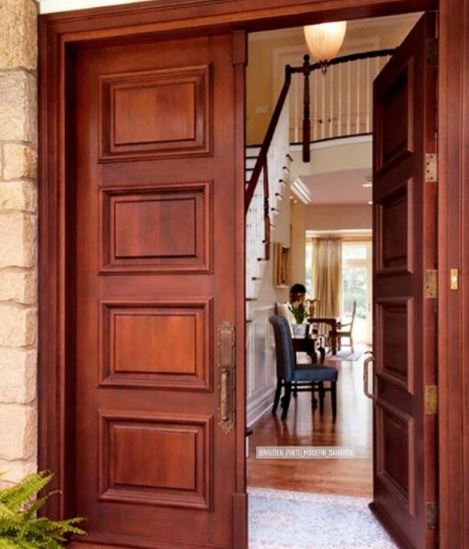 Berbeda gaya hunian, berbeda juga jenis pintu yang cocok digunakan di rumah. Jika Anda ingin memiliki hunian yang nampak mewah dari depan rumah, Anda bisa menggunakan yang berdesain mewah seperti ini. Pintu dengan desain dua pintu seperti ini memang sangat cocok dihadirkan pada hunian mewah. Juga, motif dari serat-serat kayu alaminya dapat membuat tampilan rumah Anda menjadi lebih menarik dan terkesan natural. Pintu seperti ini juga terlihat kuat dan kokoh.