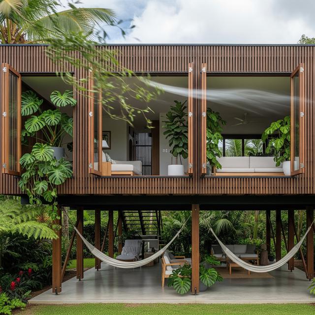 Desain rumah panggung adalah salah satu solusi arsitektur tradisional yang sangat efektif untuk iklim tropis. Konsep ini mengangkat struktur bangunan dari permukaan tanah, menciptakan ruang kosong di bawahnya yang dikenal sebagai kolong. Desain ini secara alami membantu sirkulasi udara dan mengurangi kelembaban di dalam rumah, menjadikannya bentuk arsitektur vernakular yang banyak ditemukan di daerah tropis, termasuk Indonesia.