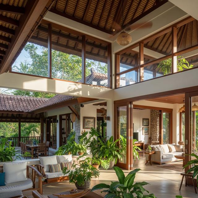 Desain ini menekankan penggunaan bukaan yang besar dan banyak pada fasad bangunan untuk memaksimalkan masuknya udara dan cahaya alami. Jendela dan pintu yang lebar, seringkali dari lantai ke langit-langit, adalah ciri khasnya. Dalam arsitektur tropis, penggunaan jendela dan pintu yang besar adalah kunci untuk memaksimalkan ventilasi alami dan membiarkan cahaya masuk, membantu menciptakan koneksi yang kuat antara interior dan eksterior.