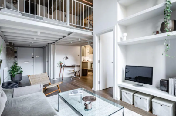 3. Ingin memiliki ruang tamu yang luas di apartemen sempit? Kamu bisa gunakan gaya mezzanine untuk mewujudkannya seperti ini