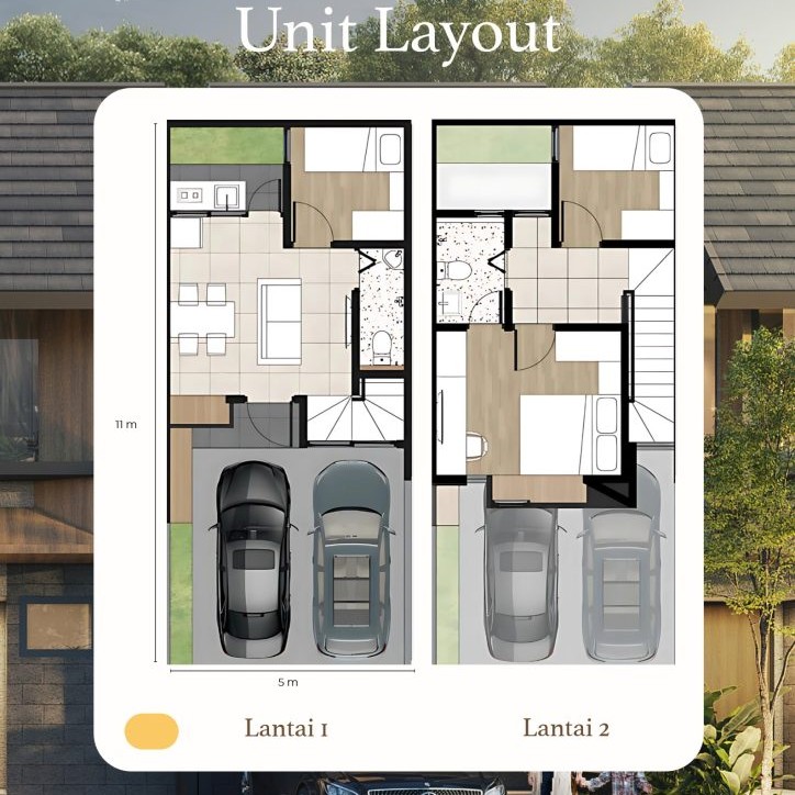 Tipe Dwipa di Ananda Terrace Ciputat hadir sebagai hunian dua lantai yang memadukan kenyamanan dan estetika modern. Dengan luas tanah 66 m² dan luas bangunan 73 m², tipe ini menawarkan ruang yang lebih luas dan fleksibel untuk menunjang aktivitas keluarga.