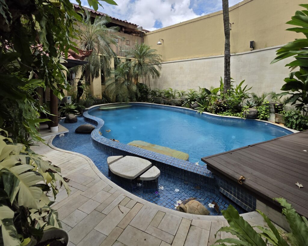 Rumah ini memiliki 4+2 kamar tidur dan 2+1 kamar mandi, ideal untuk keluarga kecil maupun besar. Udara sejuk tetap terjaga berkat 10 unit AC yang sudah terpasang di seluruh ruangan. Bagian favorit? Tentu saja kolam renang pribadi yang siap menjadi tempat relaksasi setiap hari.