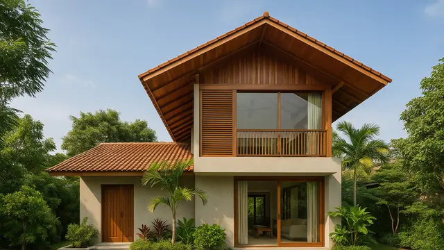 Desain tropis modern sangat cocok untuk iklim Indonesia yang panas dan lembap. Rumah bergaya ini, dengan bagian belakang yang bertingkat separuh, menekankan pentingnya ventilasi silang dan pencahayaan alami. Elemen kayu, atap miring, serta taman kecil menjadi ciri khasnya yang menonjol.