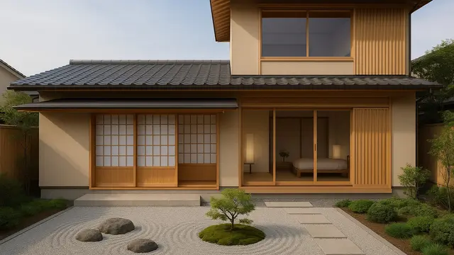 Desain rumah bergaya Jepang modern menawarkan perpaduan antara kesederhanaan dan elemen alami yang memikat. Pada bagian belakang rumah yang bertingkat setengah, konsep ini diwujudkan melalui penggunaan material kayu, shoji screen, serta kehadiran taman zen kecil yang menambah kesan damai. Ketenangan dan keharmonisan menjadi fokus utama dalam desain ini.
