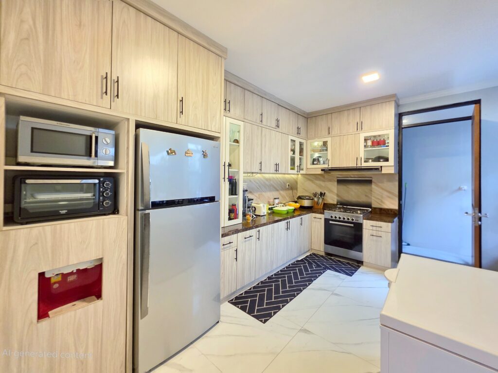 Lantai granite tile menambah kesan elegan dan mudah dalam perawatan, sementara kitchen set modern memudahkan Anda menyiapkan hidangan favorit keluarga. Ketersediaan air PAM dan listrik berkapasitas 5500 VA memastikan kebutuhan rumah tangga terpenuhi dengan baik.